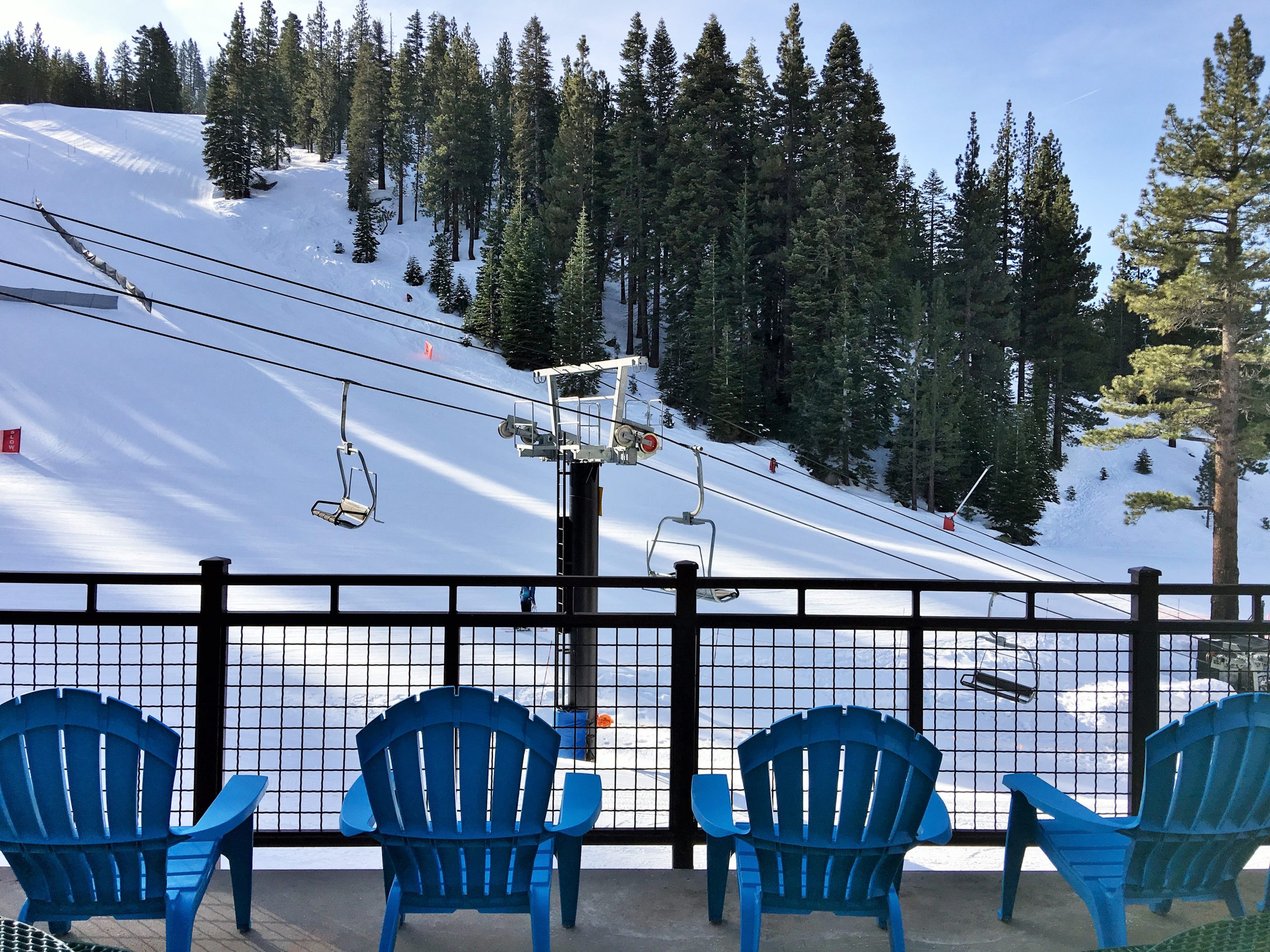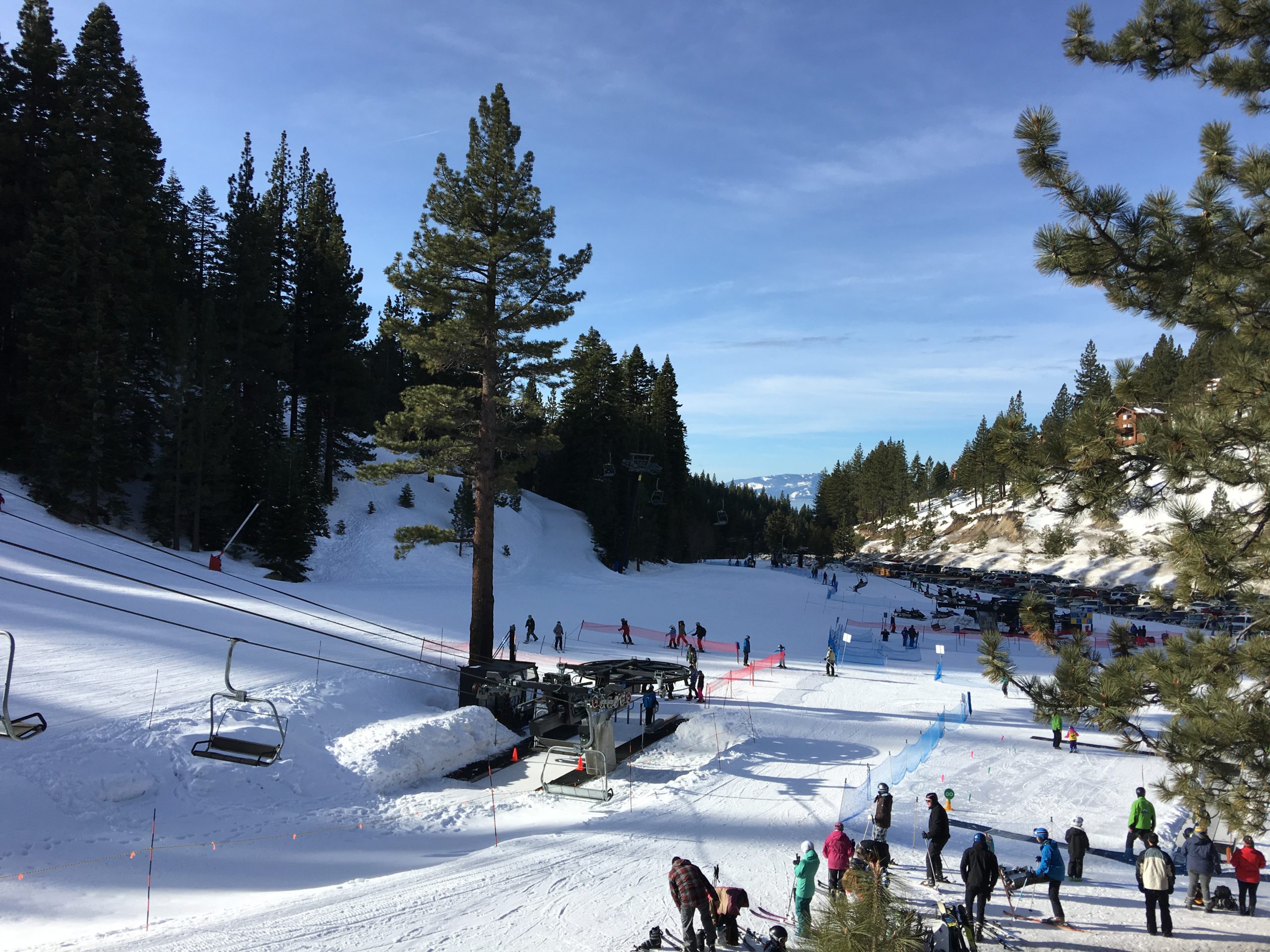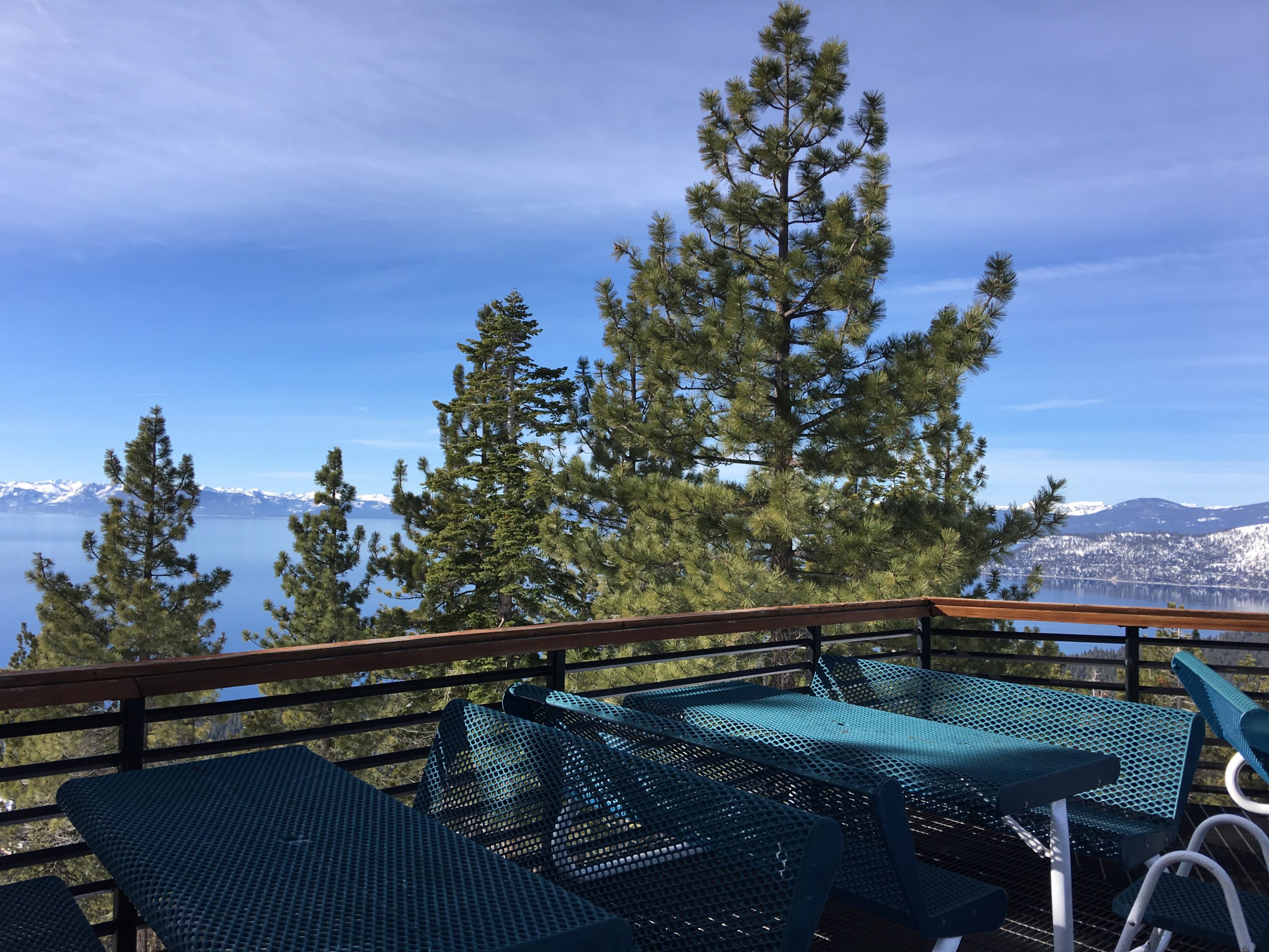 山の中腹裾にあるこのSnowflake Lodgeはこちらもロッジといっても宿泊施設ではなくカフェテリア兼休憩所でここからの眺望はそれはそれは素晴らしい紺碧のタホ湖ビュー!スキーはともかく、この景色を見にだけにでも来たいとおもわせるレイクビューです。ここは朝はガラガラでしたがランチ時分は食事の購買は長蛇の列&テーブルは争奪戦、とかなり混む激戦区となります。週末はここでBBQランチも販売してます。